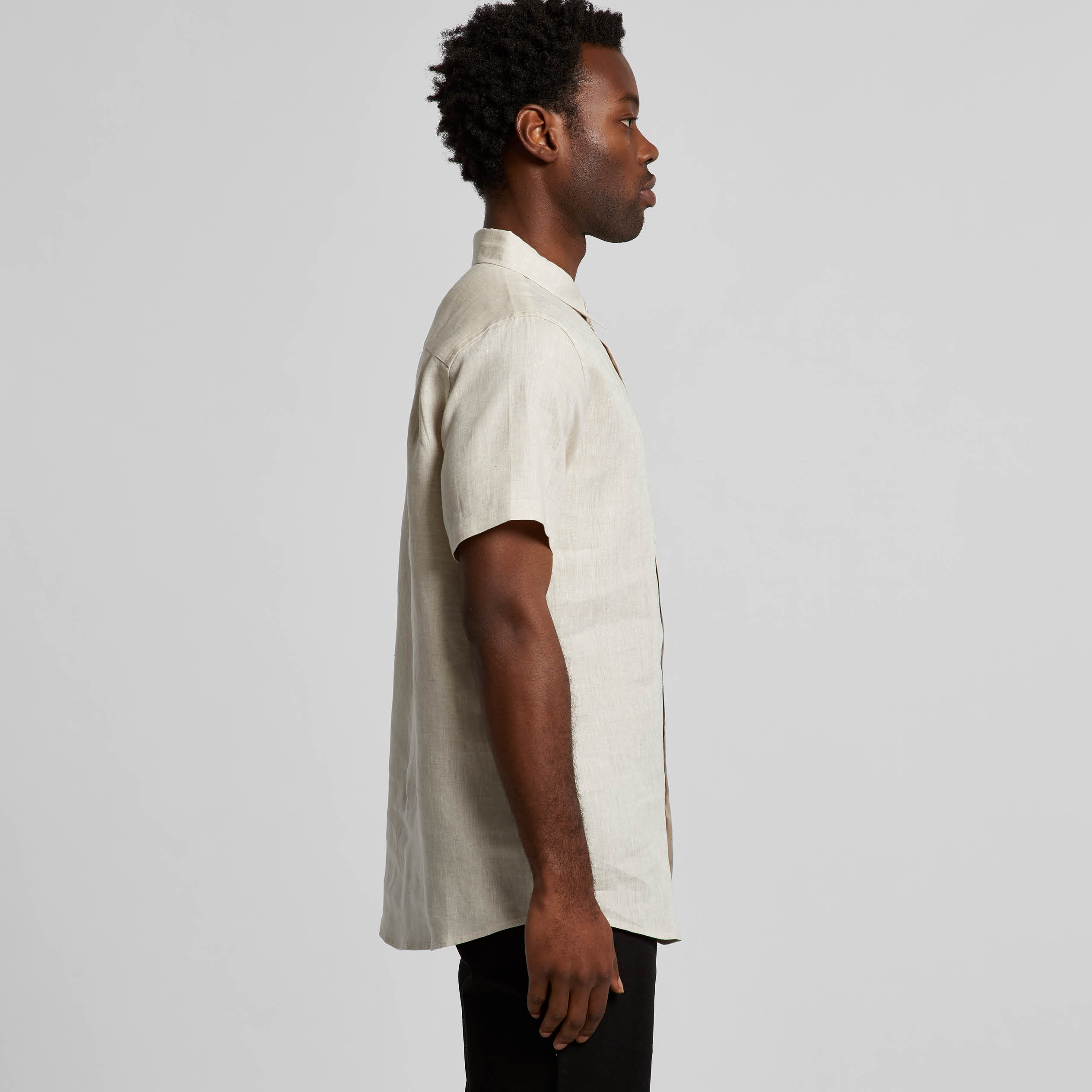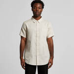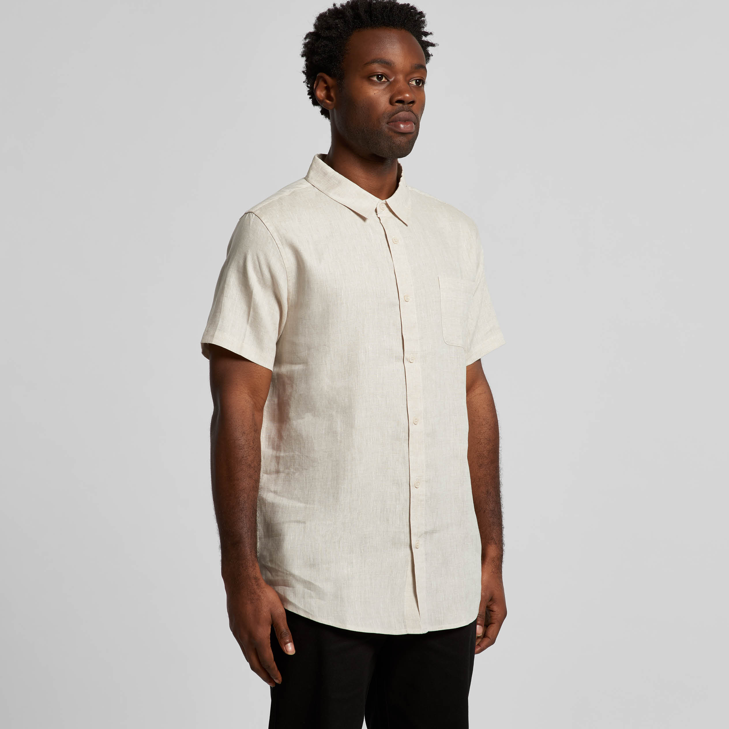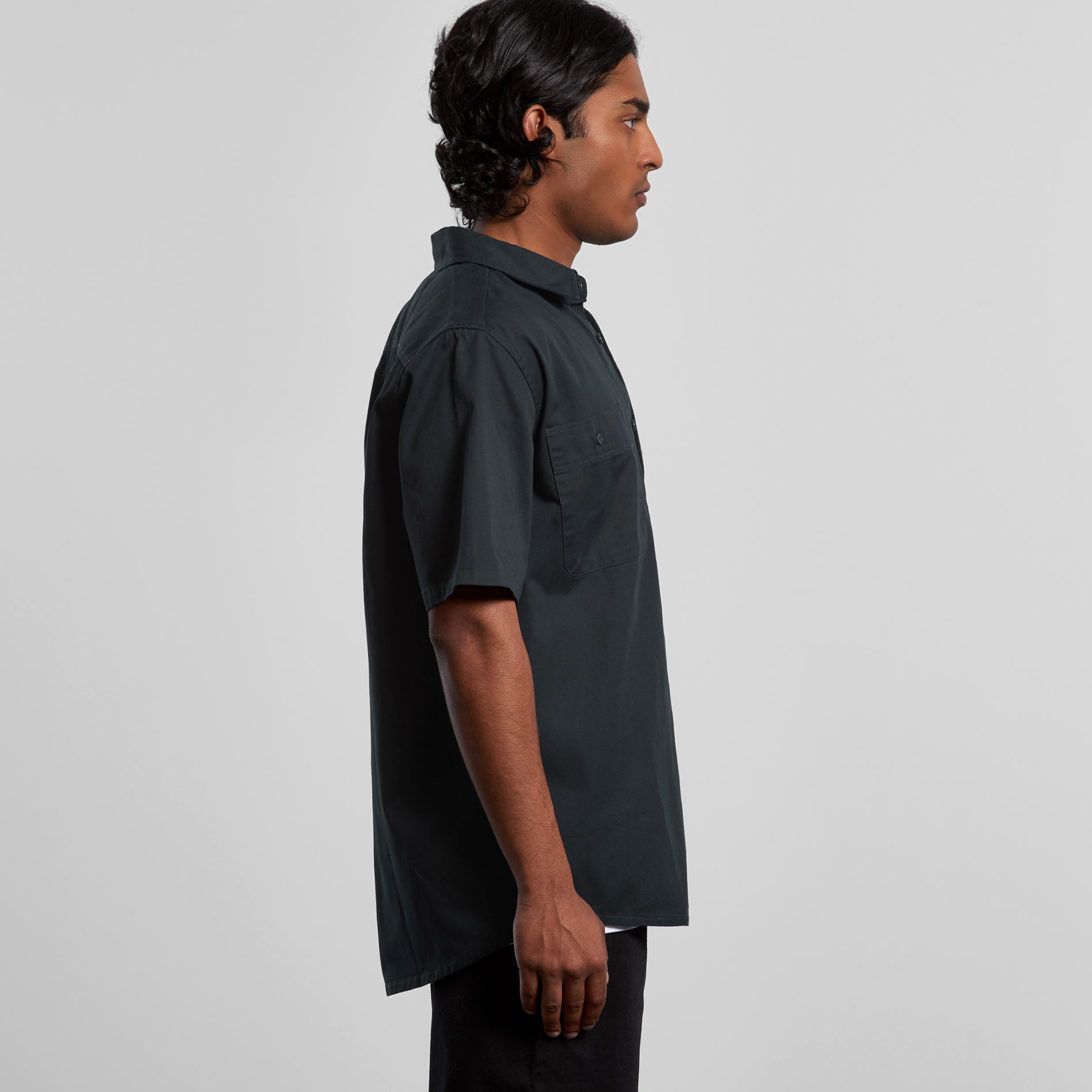 Short sleeve button up shirt, two chest pockets with pen channel, tonal buttons,  side seamed, back yoke with hang loop, preshrunk to minimise shrinkage.