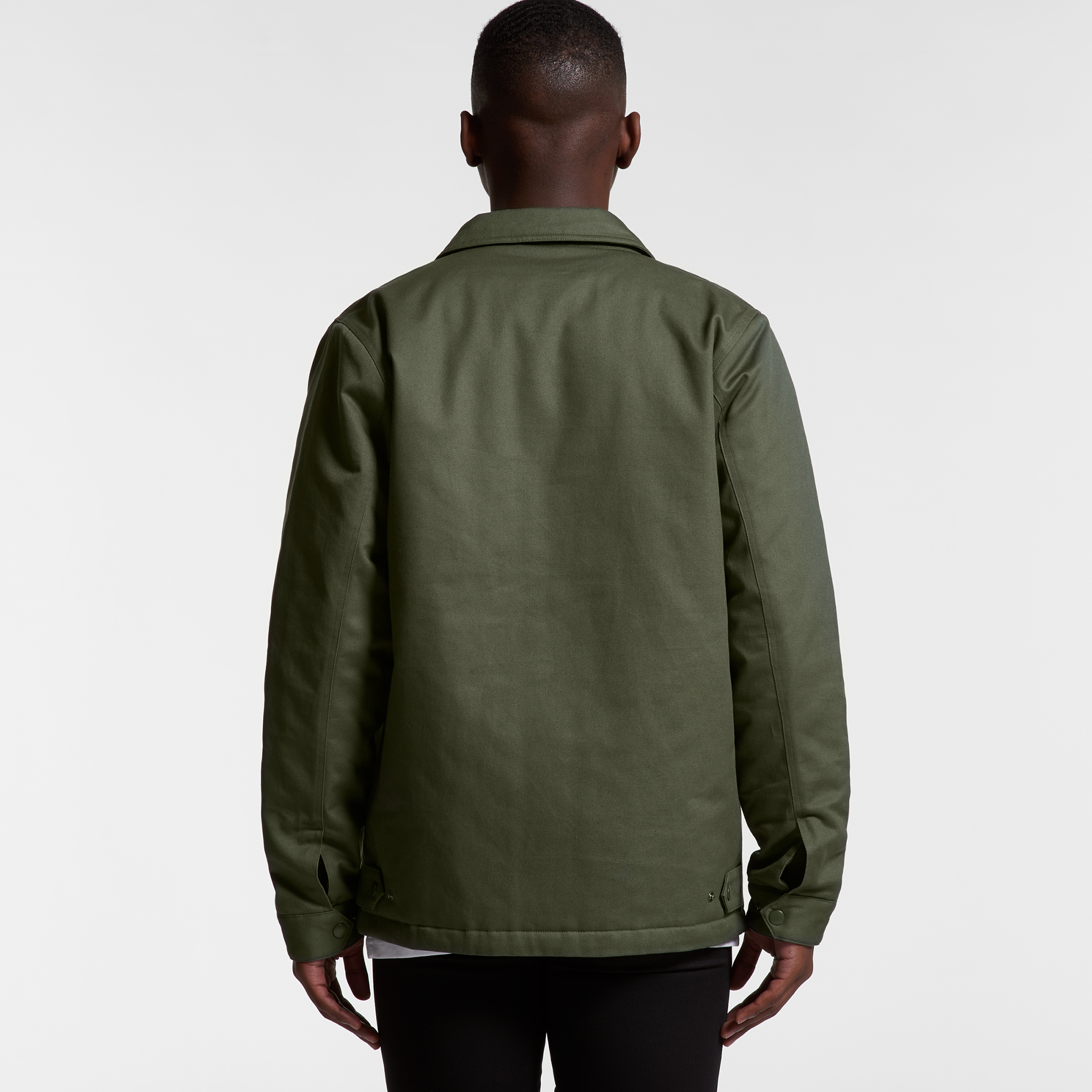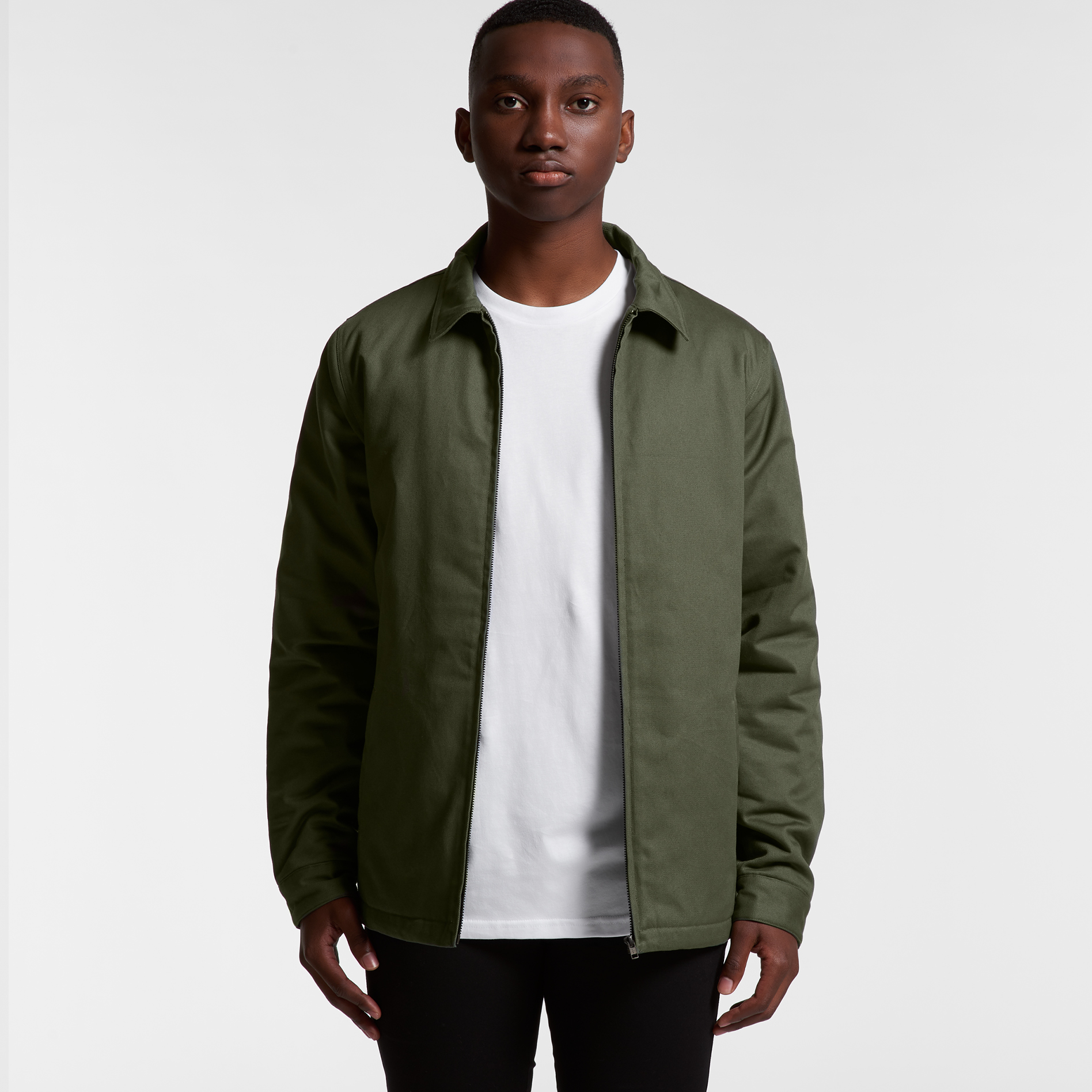 Ribbed Collar, hem & cuffs, two side pockets, YKK snap domes to close,