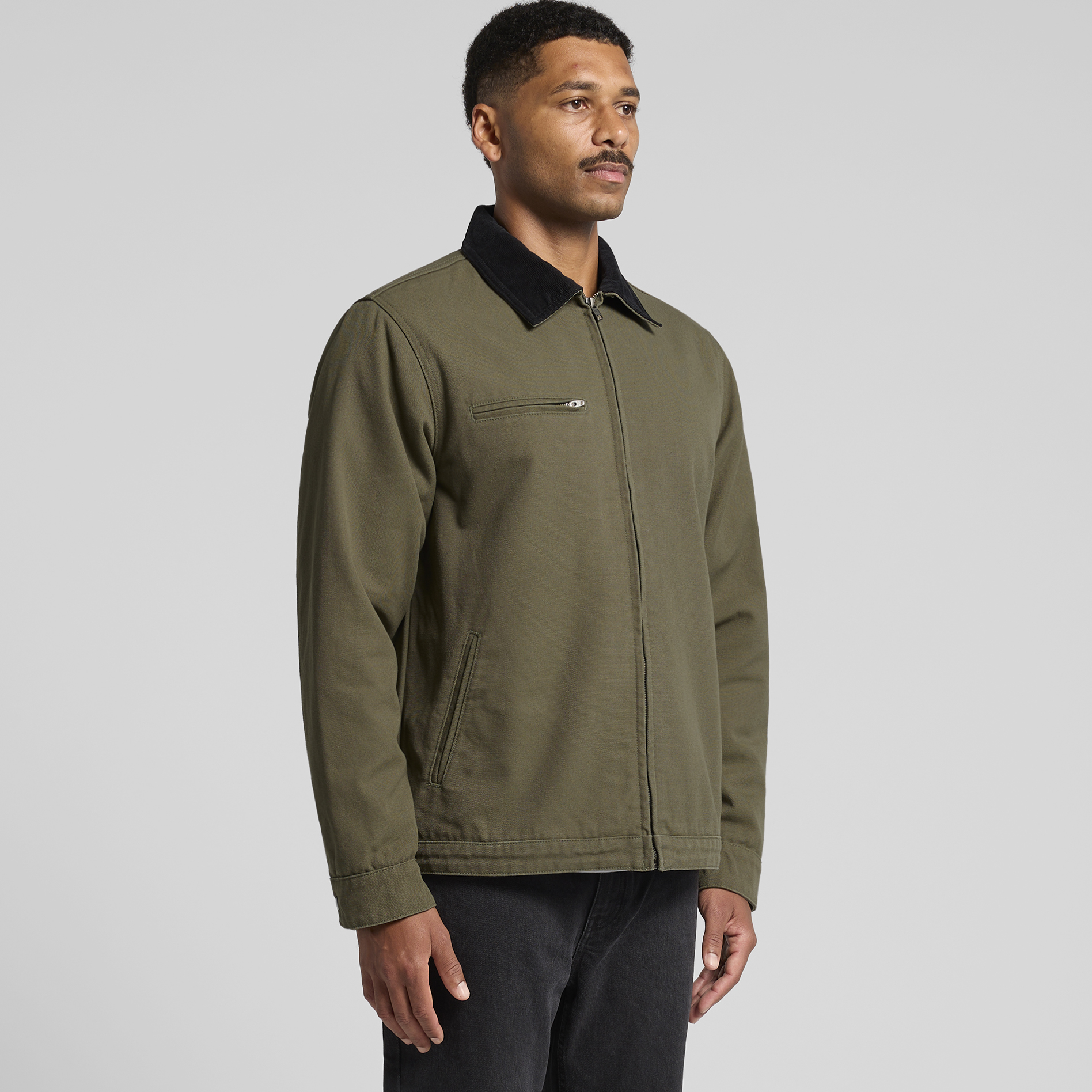 Fabric: Heavy weight, 470 GSM, 100% cotton duck canvas, polyester blanket lining for body, recycled polyester padded sleeve lining, 16 wale contrast corduroy collar facing