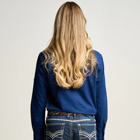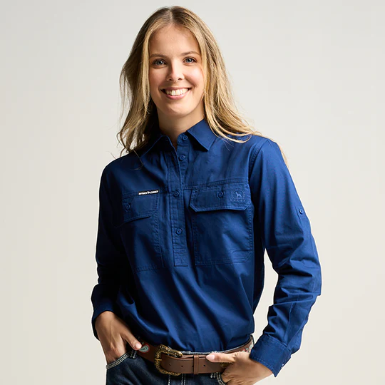 OBCWWS001-ROY SOMERSET | Womens Half Button Long Sleeve Work Shirt- Royal